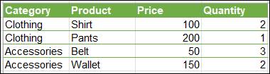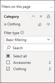 ובמקום לגרור אל השורות, נוכל להחיל סינון, לדוגמה – לפי קטגוריית "Clothing"