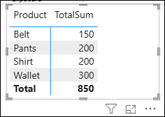 אם באקסל היינו משתמשים ב SUM על עמודת העזר Total שיצרנו, אז ב-Power BI, ניצור מדד שסוכם את העמודה המחושבת Total שיצרנו קודם: