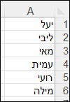 לפנינו טבלת נתונים בעמודה A, ובה רשימת עובדים: